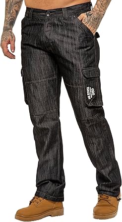 989Zé ENZO Mens Cargo Combat Jeans Loose Fit Casual Denim Pants
